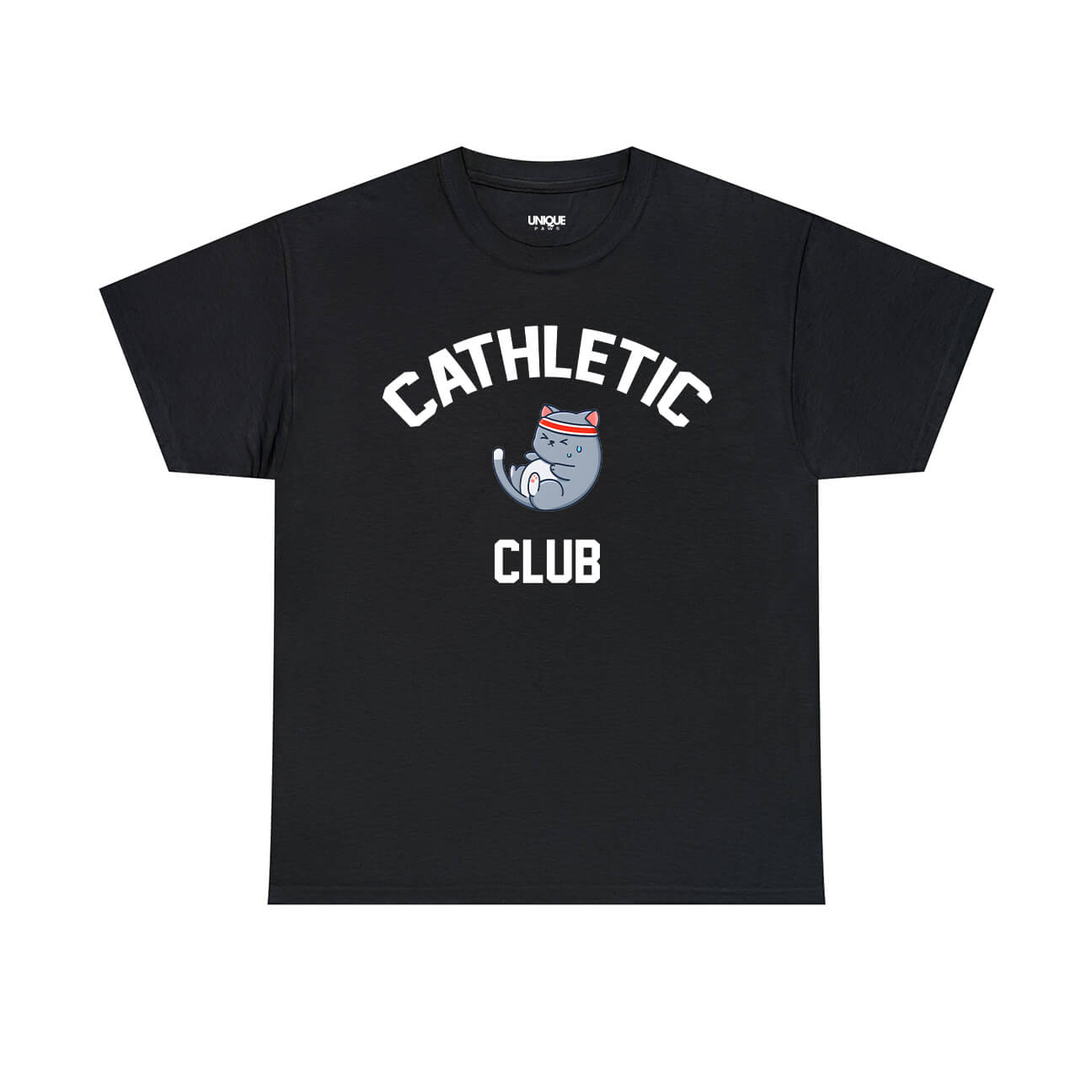 Be the envy of everyone in the gym in the Cathletic Club T-Shirt! This funny T-Shirt is purr-fect for cat and fitness lovers alike; show off your sense of humor and athletic skill in this crazy combo pun. Let everyone know that you're part of the "meow-vement" and that you work (out) hard for those muscle gains!