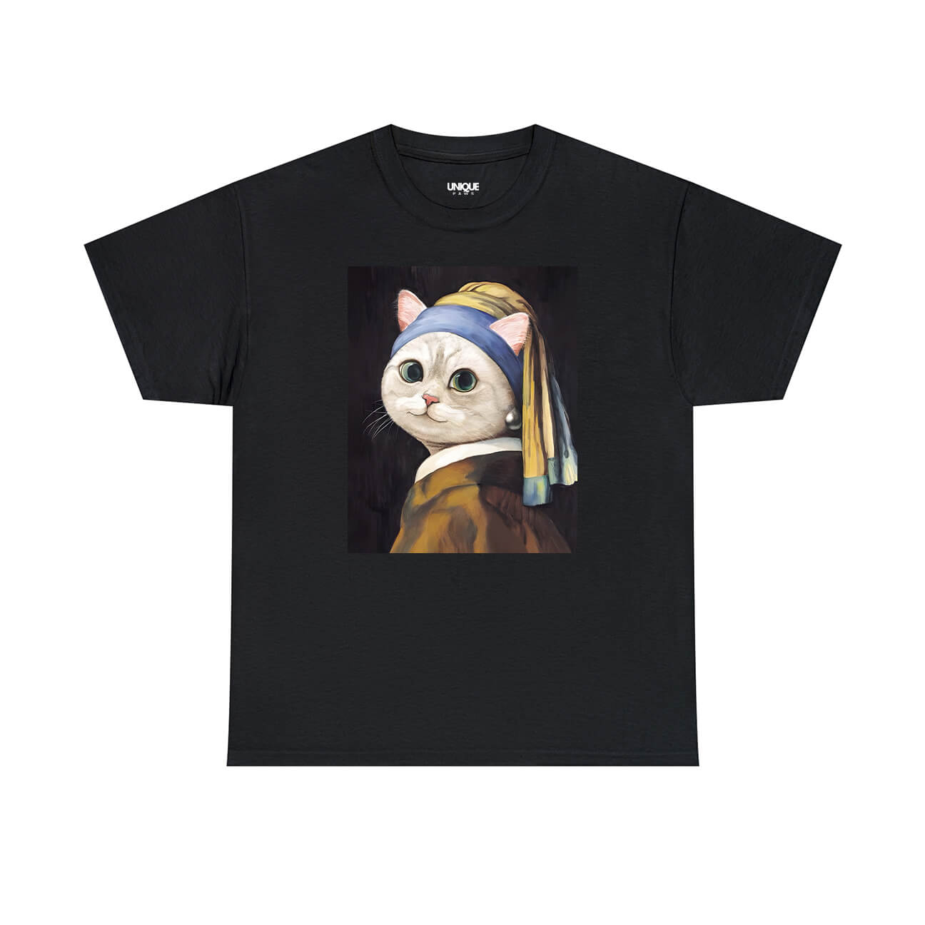 Show off your love of pets and classic art with this quirky Cat with a Peal Earring T-Shirt! Featuring a funny cat wearing an earring in a nod to the classic oil painting, this stylish tee is sure to turn heads, purr-fect for anyone looking to stand out and show off their individual style - me-wow!
