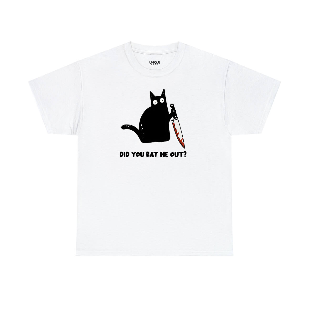 This "Did you rat me out?" T-Shirt is sure to be a conversation starter! With its playful pun and whimsical design, you'll be looking cute as a kitten while getting laughs for this comical tee. Lay it on thick and rat out your own unique style!