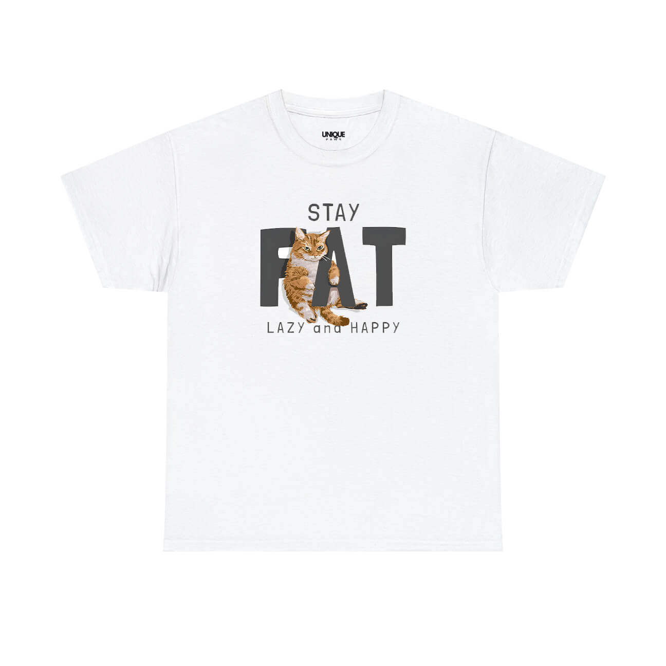 This Stay Cat, Lazy and Happy T-Shirt is purr-fect for cozy days spent lounging around! The funny design features a very content cat and the phrase "Stay Cat, Lazy and Happy" to help you stay positive and take it easy. Meow-sic to our ears!